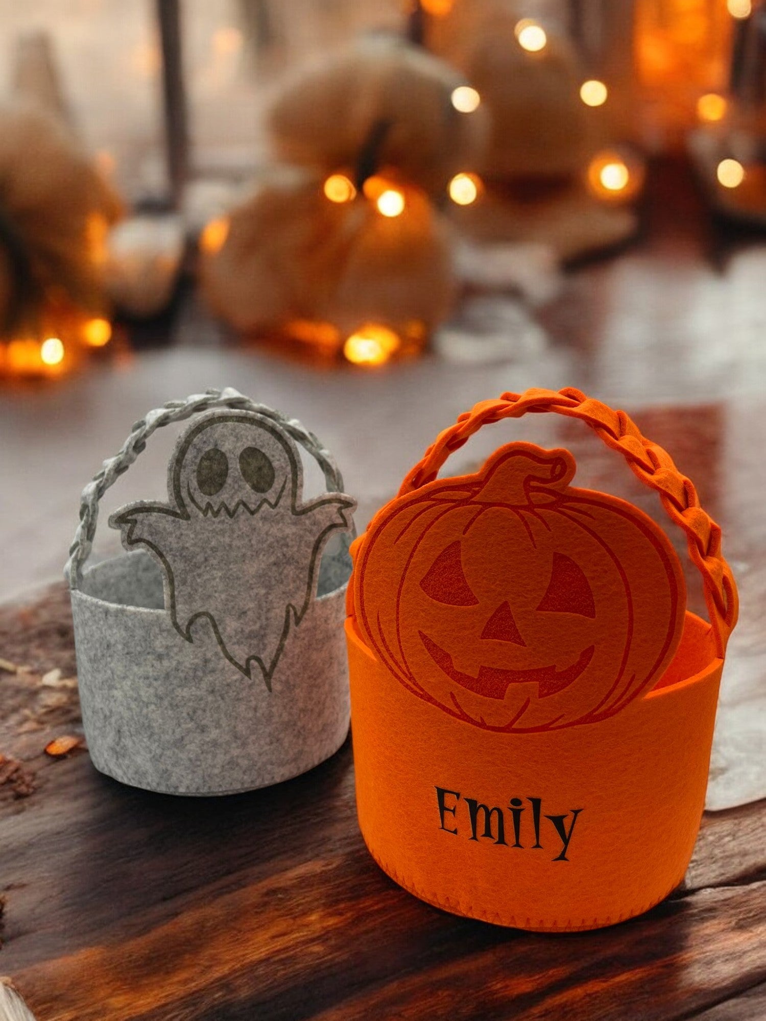 Mach Dein Halloween zu etwas ganz Besonderem mit unseren handgefertigten Halloween-Körbchen aus Filz! Jedes Körbchen wird zu 100 % in Deutschland hergestellt und besticht durch seine hochwertige Qualität. Du kannst zwischen zwei tollen Motiven wählen: einem süßen Geist oder dem klassischen Kürbis – perfekt für Kinder und Erwachsene.